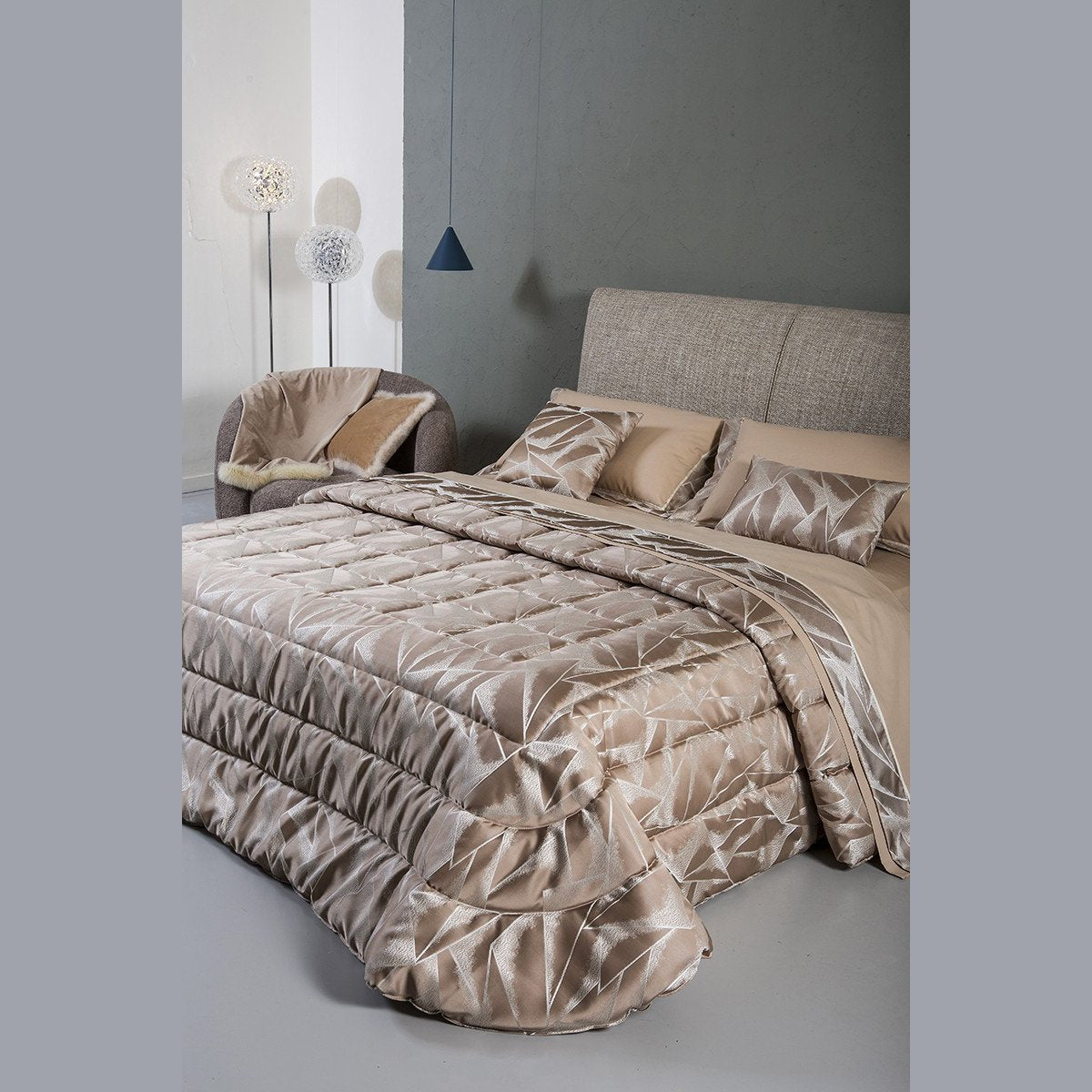 Trapunta elegante e raffinata, per letto Matrimoniale, modello Nicke, del marchio italiano Battaglia.