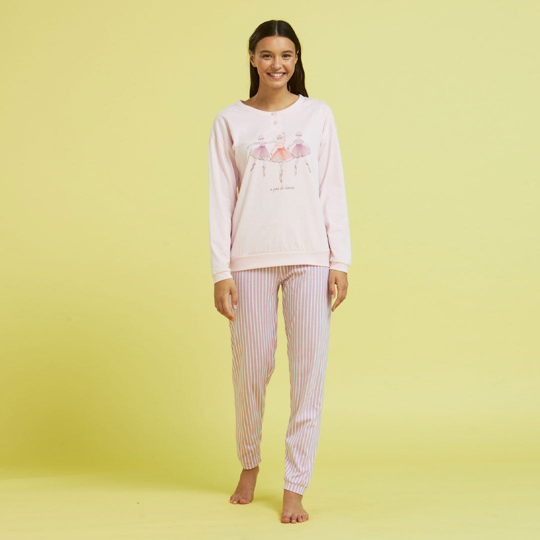 Il Pigiama Donna Dancer è composto da Maglia a manica lunga e Pantalone con polsino.