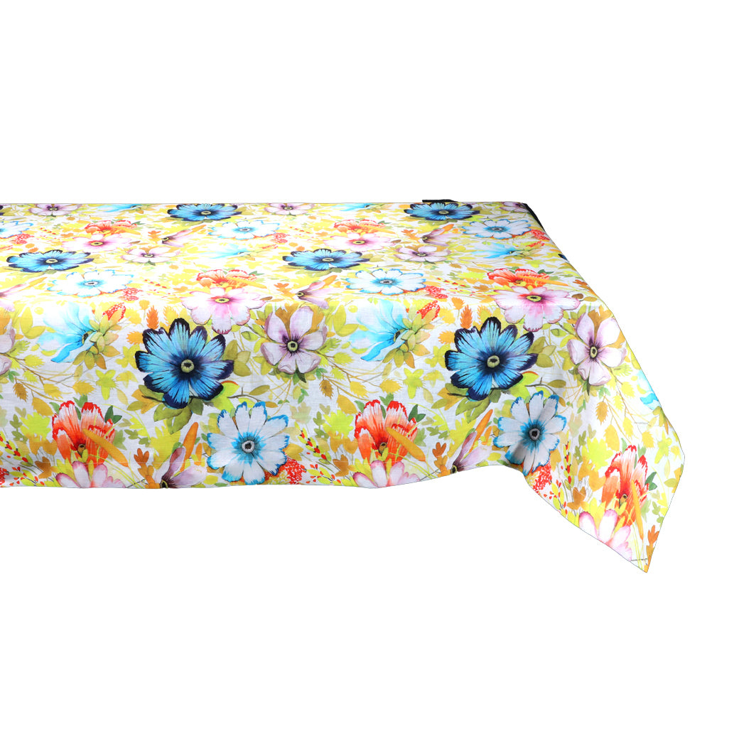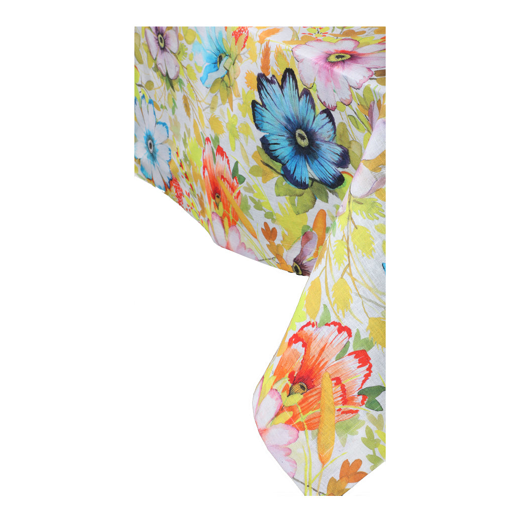 Tovaglia Pregiata della ricercata linea Maya, in Puro Lino Stampato, nella misura 150x360 cm. Ideale per le calorose tavolate da 18 persone, con un disegno floreale ricco di colori vivaci e brillanti, in alta definizione. La Tovaglia Maya è stata creata con una lavorazione di alto pregio, e rifinita a mano da artigiani di grande esperienza. Realizzata nel cuore dell'Umbria, nel labratorio di Montefalco, dal famoso brand Tessuto Artistico Umbro. Resistente all'usura dei lavaggi e del tempo, morbida al tatto è una Tovaglia di grande bellezza, e di gran stile che non può mancare nelle case di chi desidera uno stile glamour e favoloso