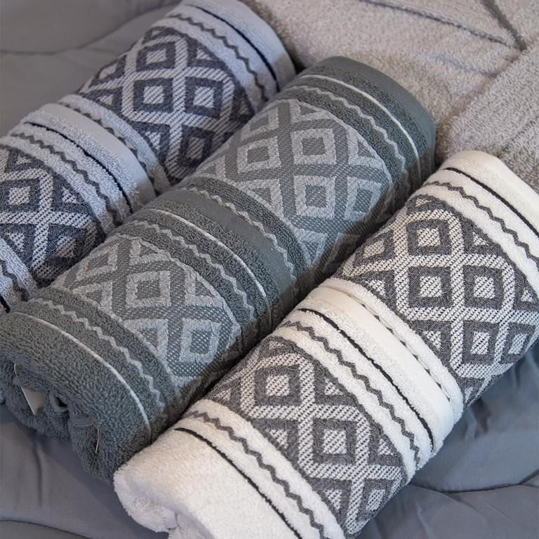 Set mit Badetüchern des Modells Mykonos, hergestellt von der bekannten Marke Pierre Cardin.