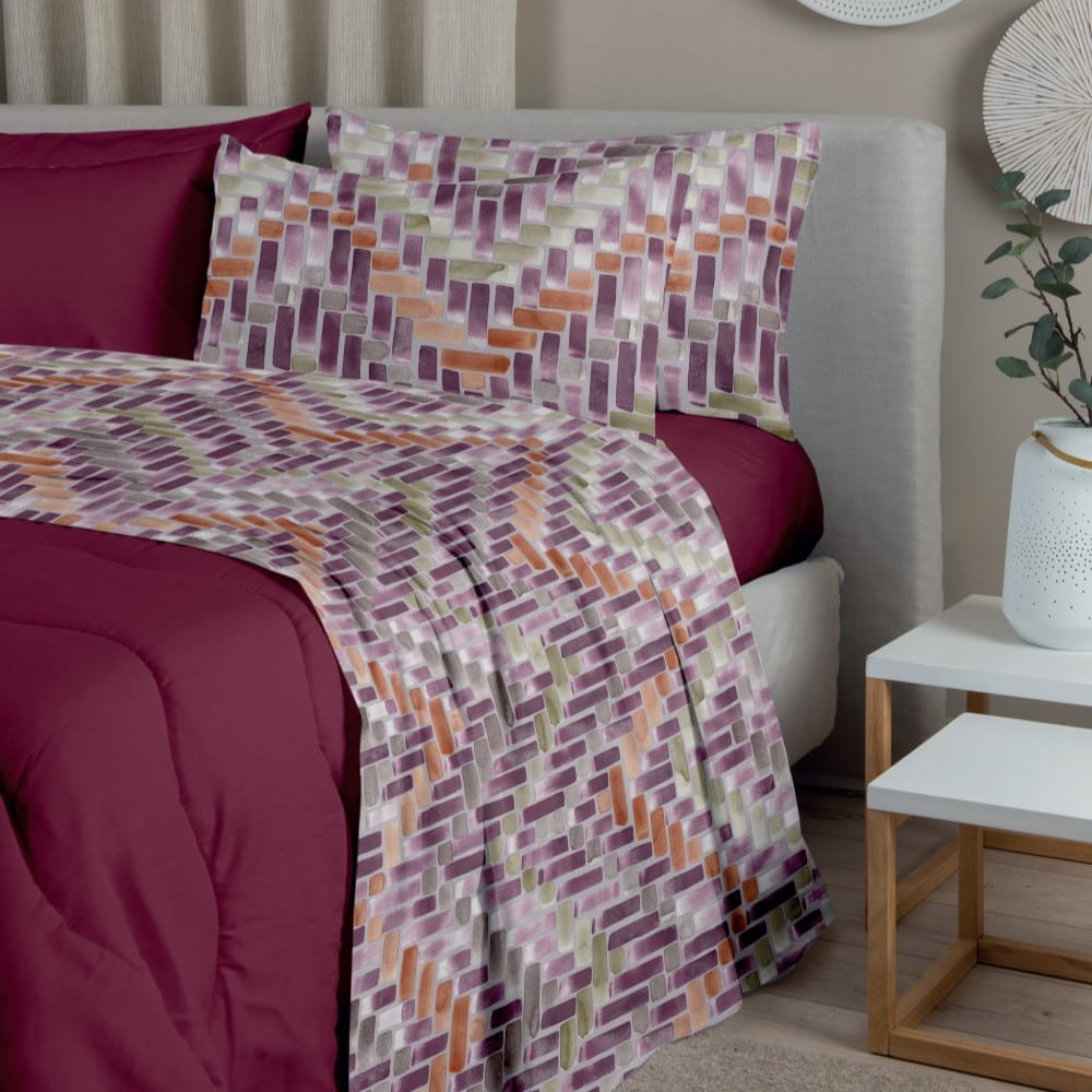 Set bestehend aus Ober- und Unterlaken mit elastischen Ecken und 2 Kissenbezügen.