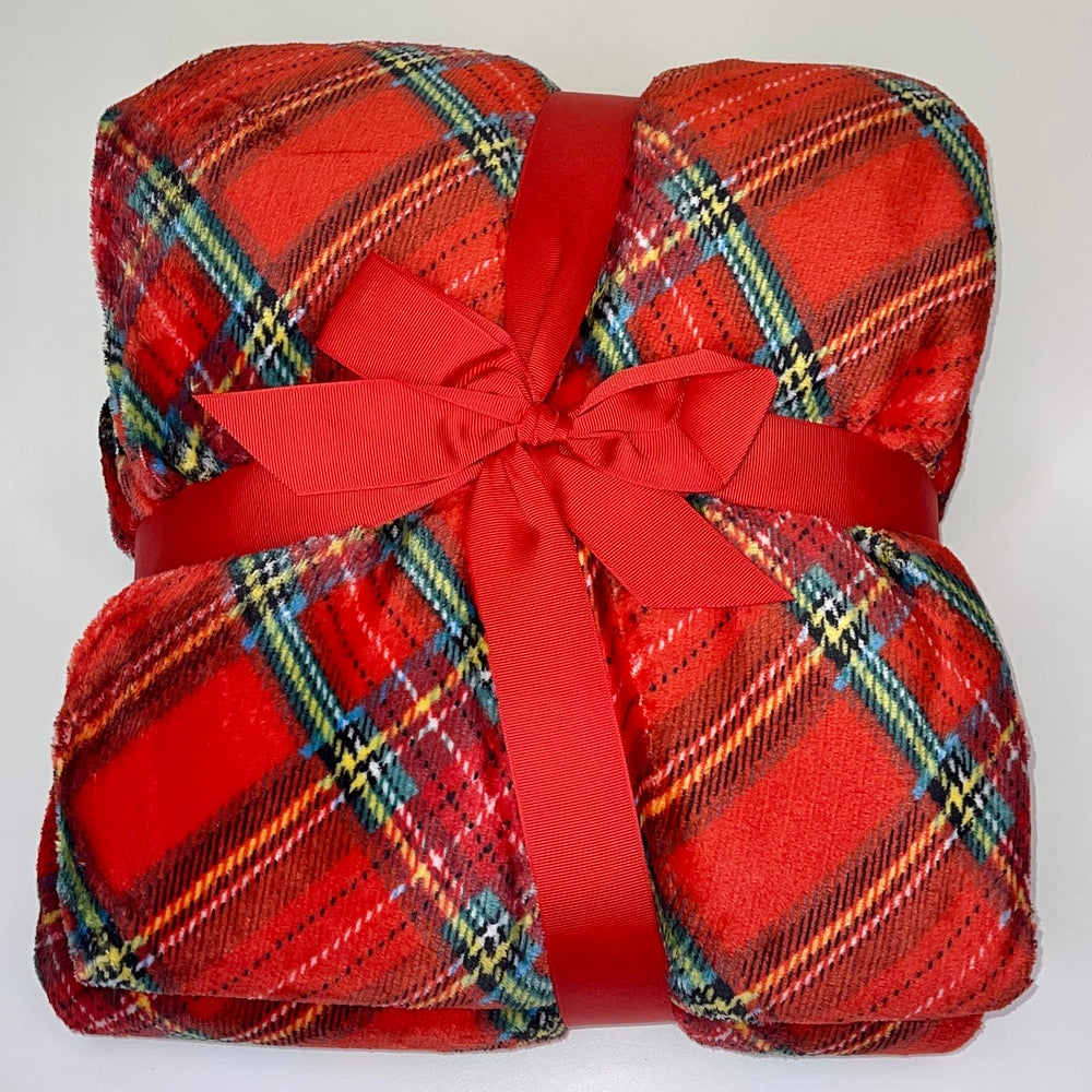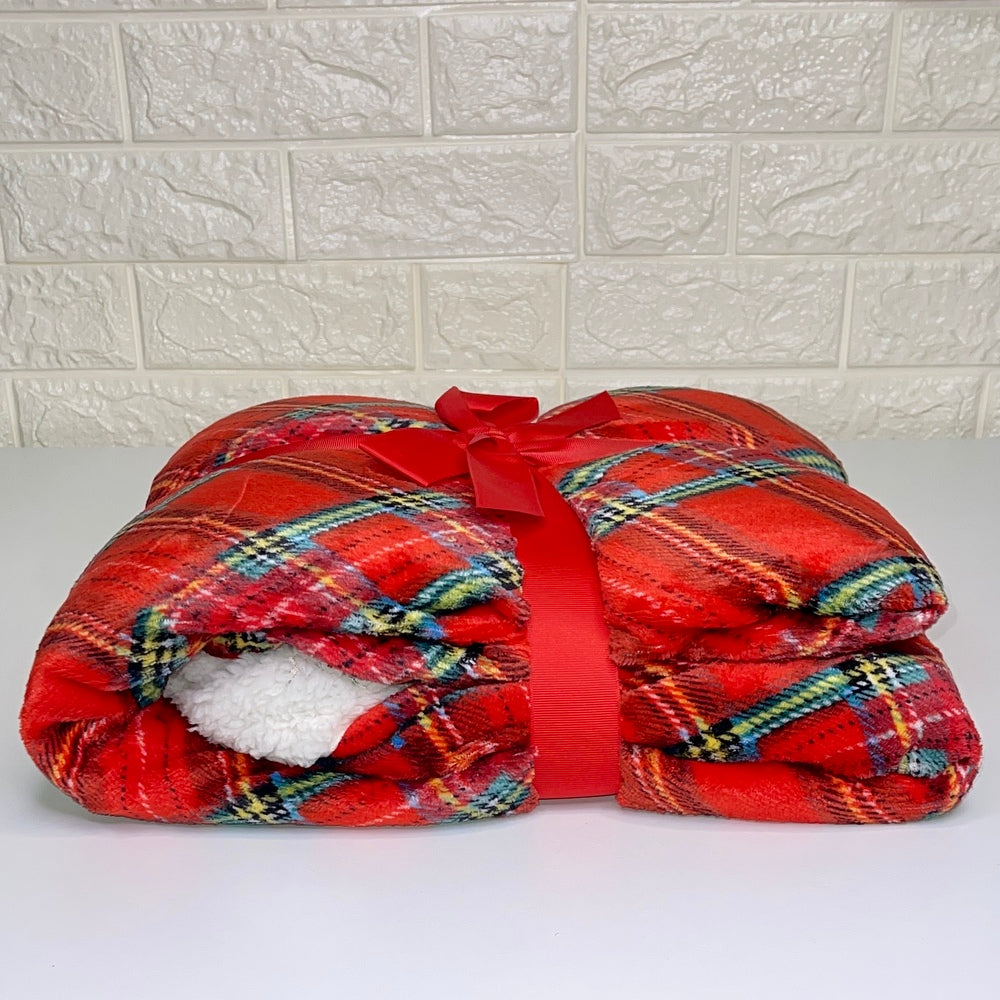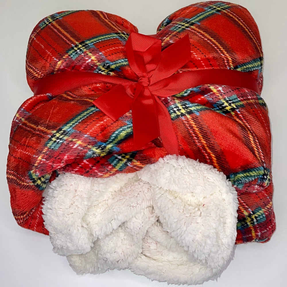 Weihnachtsplaid mit schottischem Daunex-Fell, 130 x 160 cm - Rot ist auf Lager und wird versandt, sobald es wieder verfügbar ist