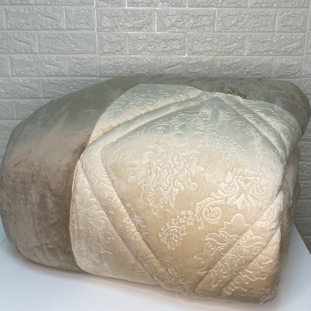 Steppdecke mit sehr weichem Chenille-Samt-Effekt und gefärbtem Jacquard-Muster.
