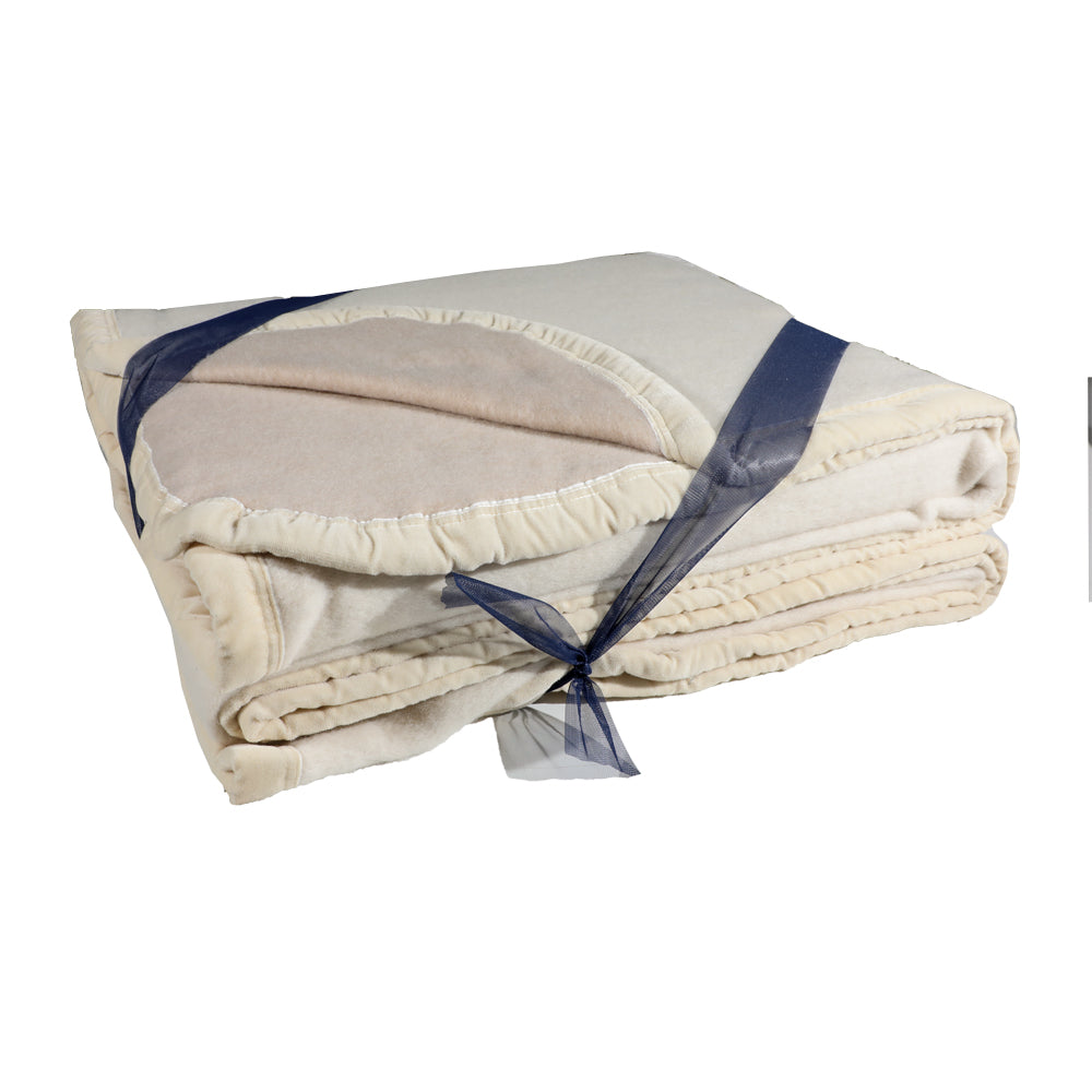 Decke aus reiner Schurwolle, einfarbig und mit Samtrand, ideal für alle, die Naturprodukte lieben, die verschleiß- und waschbeständig sind.