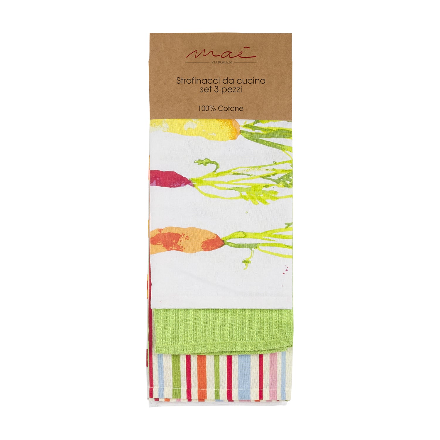 Set di 3 Strofinacci da Cucina, modello Veggy, del brand Maè by Via Roma, 60.