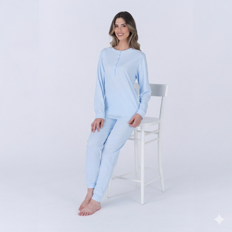 Pigiama Donna Lungo Pigiamiamoci 4428 - Cotone con Elastici ai Polsi