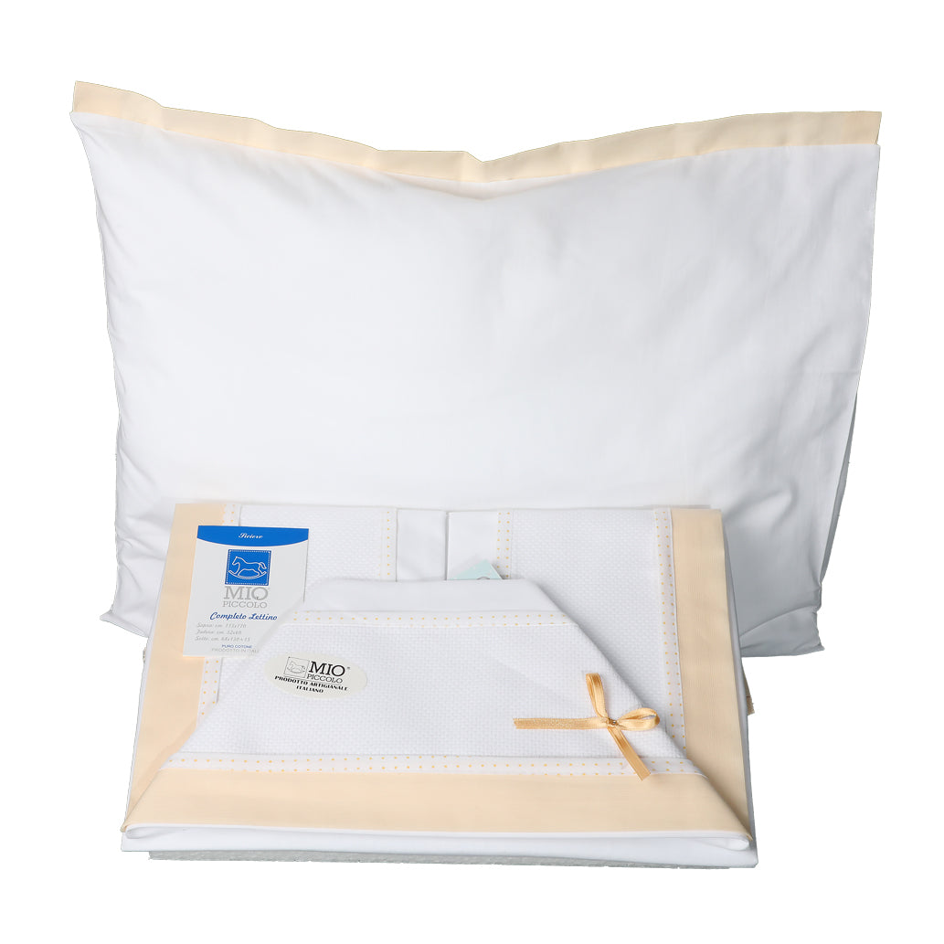 Bettlaken-Set für Kinderbett und Kinderwagen zum Besticken mit Aida-Stoff, Modell Piquet, der italienischen Marke Mio Piccolo.