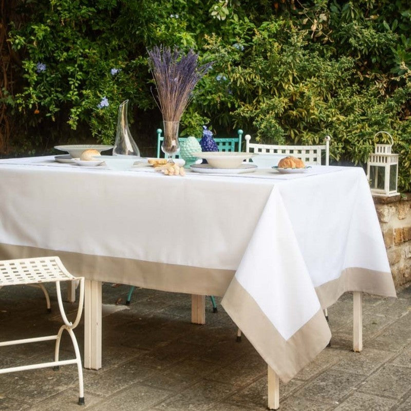 Bezauberndes Tischset bestehend aus Tischdecke + Läufer, hergestellt von der italienischen Topmarke Neith, Modell Choelo.