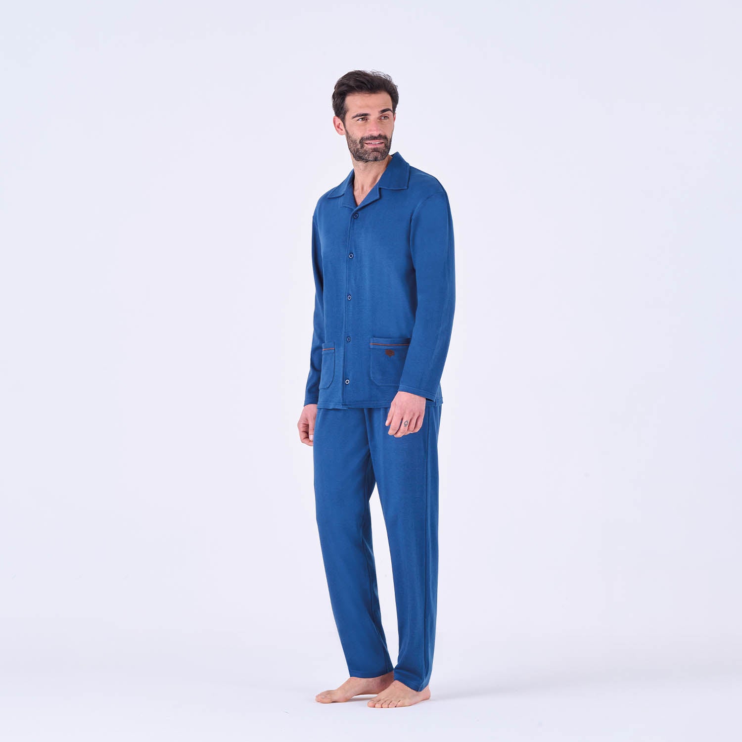 Warmer offener Herrenpyjama aus Baumwolle Pigiamiamoci 2822LA - 50 / Blau ist auf Lager und wird versandt, sobald es wieder verfügbar ist