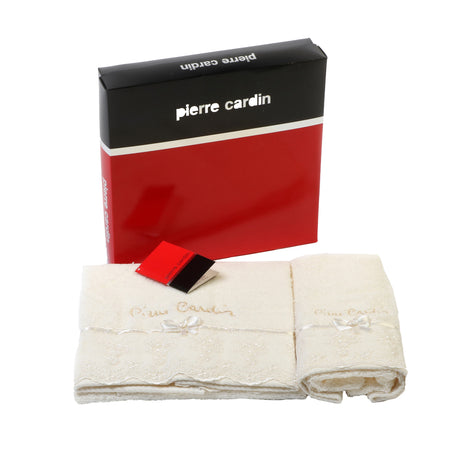 Pair of Pierre Cardin Astrid Face + Guest Terry Bath Towels Cream