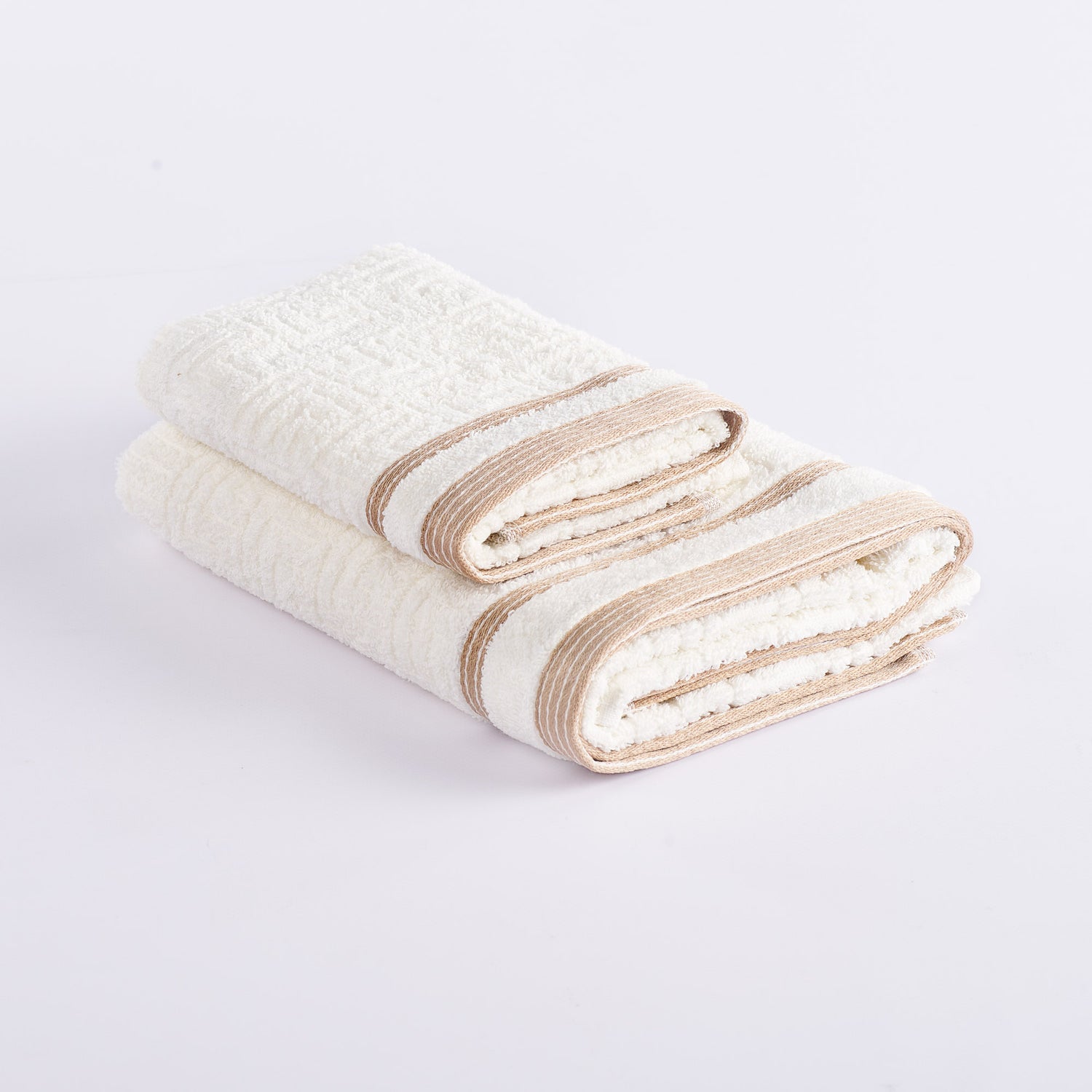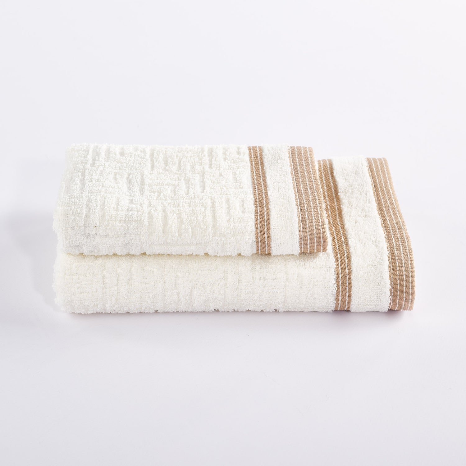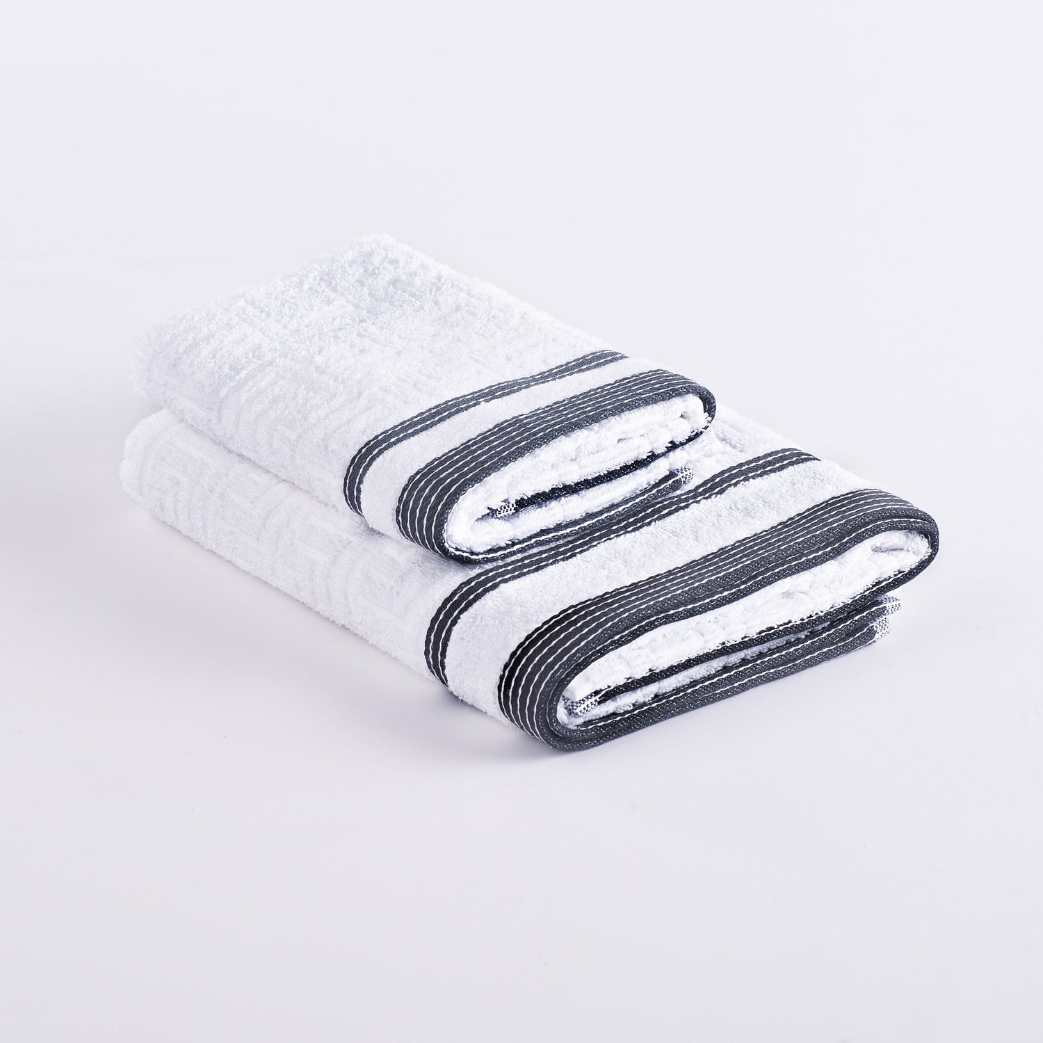 Set Asciugamani Bagno, Viso + Ospite, modello Atene All Over, del brand Maè by Via Roma, 60.