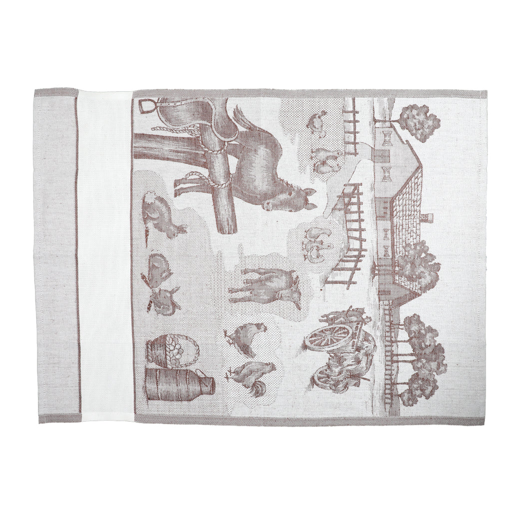 Pippi model kitchen towel, measuring 50x70 cm. Created in linen blend with Aida cloth, ideal for personalizing it and making it unique and personal. With a characteristic countryside design, featuring beautiful farm animals. Artisan product from the Tessuto Artistico Umbro brand, made entirely in Italy