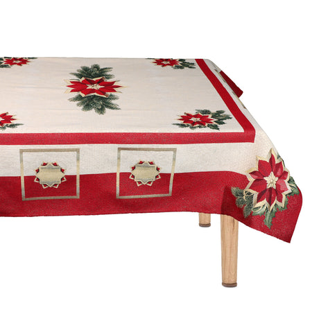 Christmas table cover Emily Home Etoile Rouge Gold color 12 seats 140x260 cm