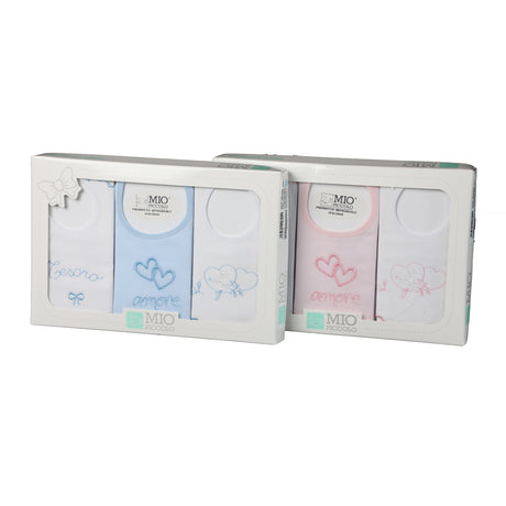 Set of 3 Baby Bibs Mio Piccolo Hearts Pure Cotton Various Colors