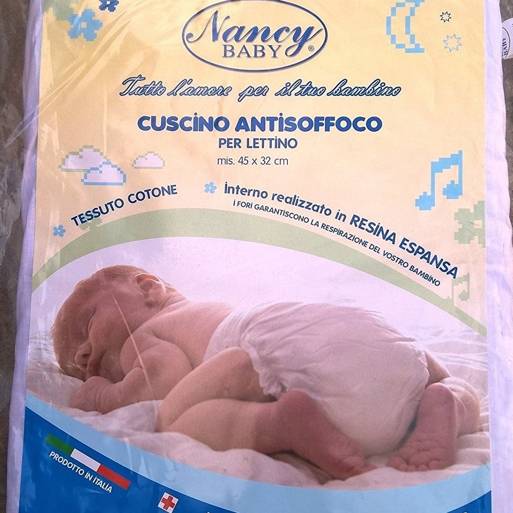 Anti-suffocation cushion for cot and cot from the Italian brand Nancy Baby, Riposo model, made entirely in Italy with expanded resin. Anatomical, hypoallergenic, perforated and anti-mite.