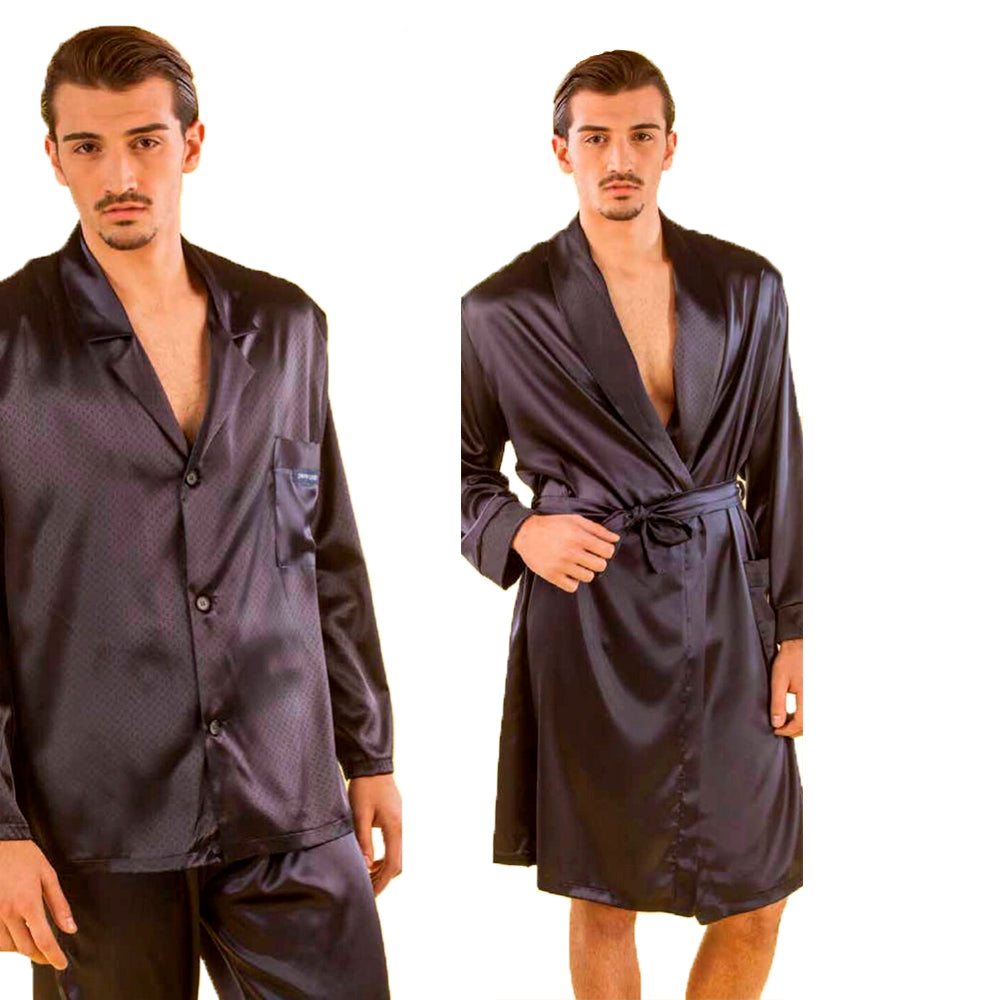Splendid men's night suit, Pierre Cardin, Ulisse model, handmade satin, from the luxury line, composed of 2 items: