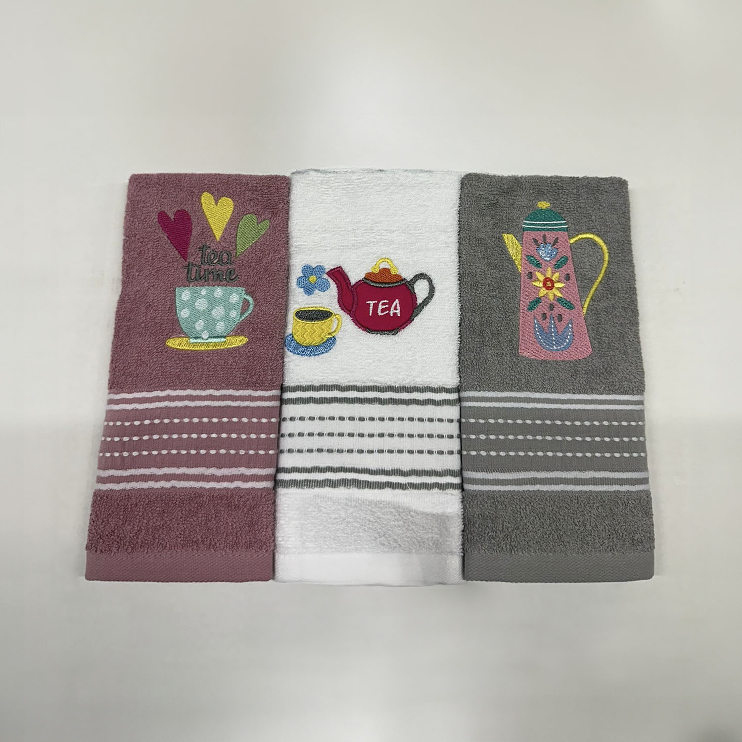 Tris di Strofinacci da Cucina, modello Tea Time, del marchio Ruocco Home.