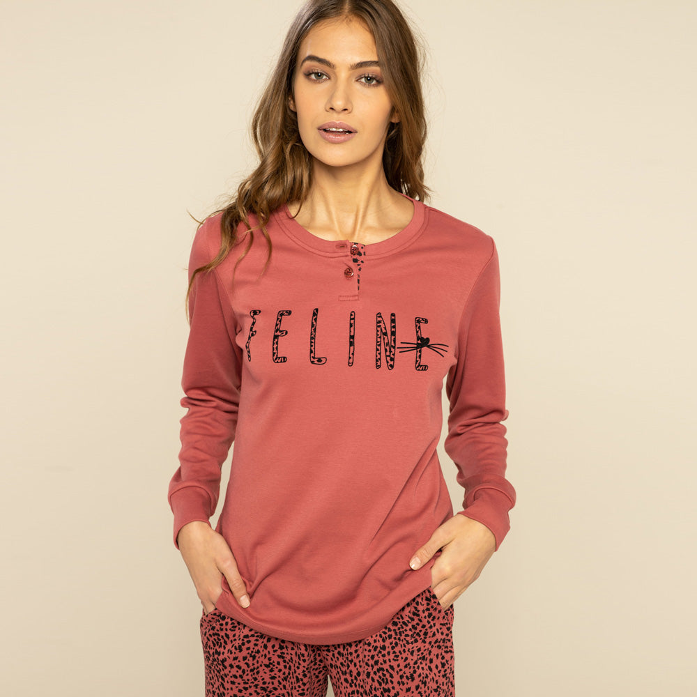 Pigiama Donna Feline in Caldo Cotone, con design animalier moderno e simpatico.