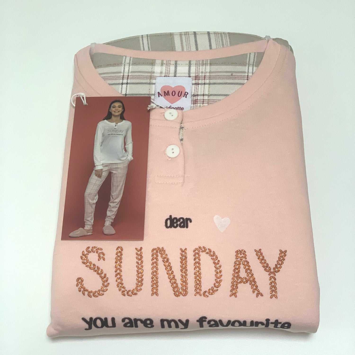 Il Pigiama Donna Sunday è disponibile in Varie Taglie e Colori: Panna e Rosa.