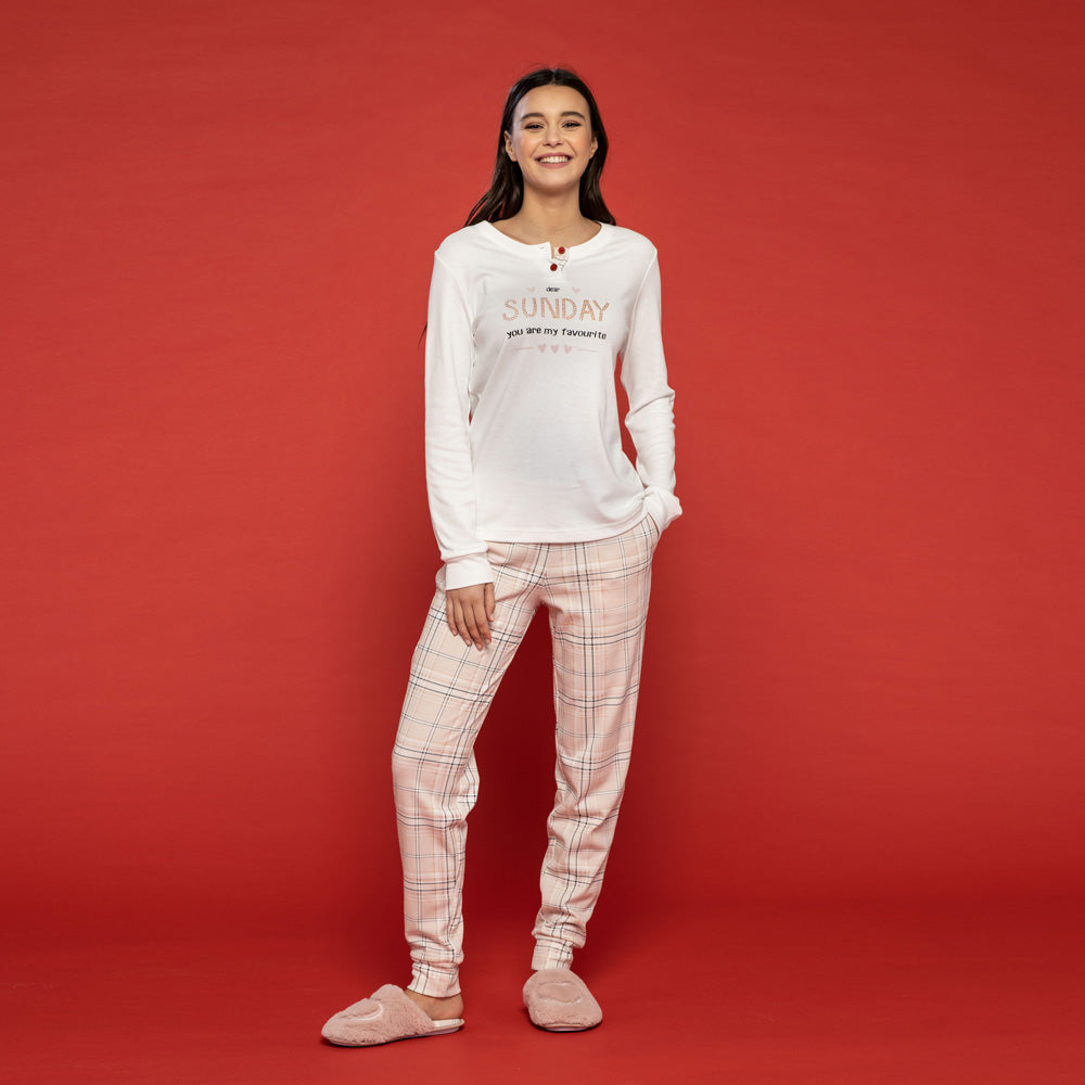 Pigiama Donna Sunday dallo stile moderno con Pantalone Tartan.